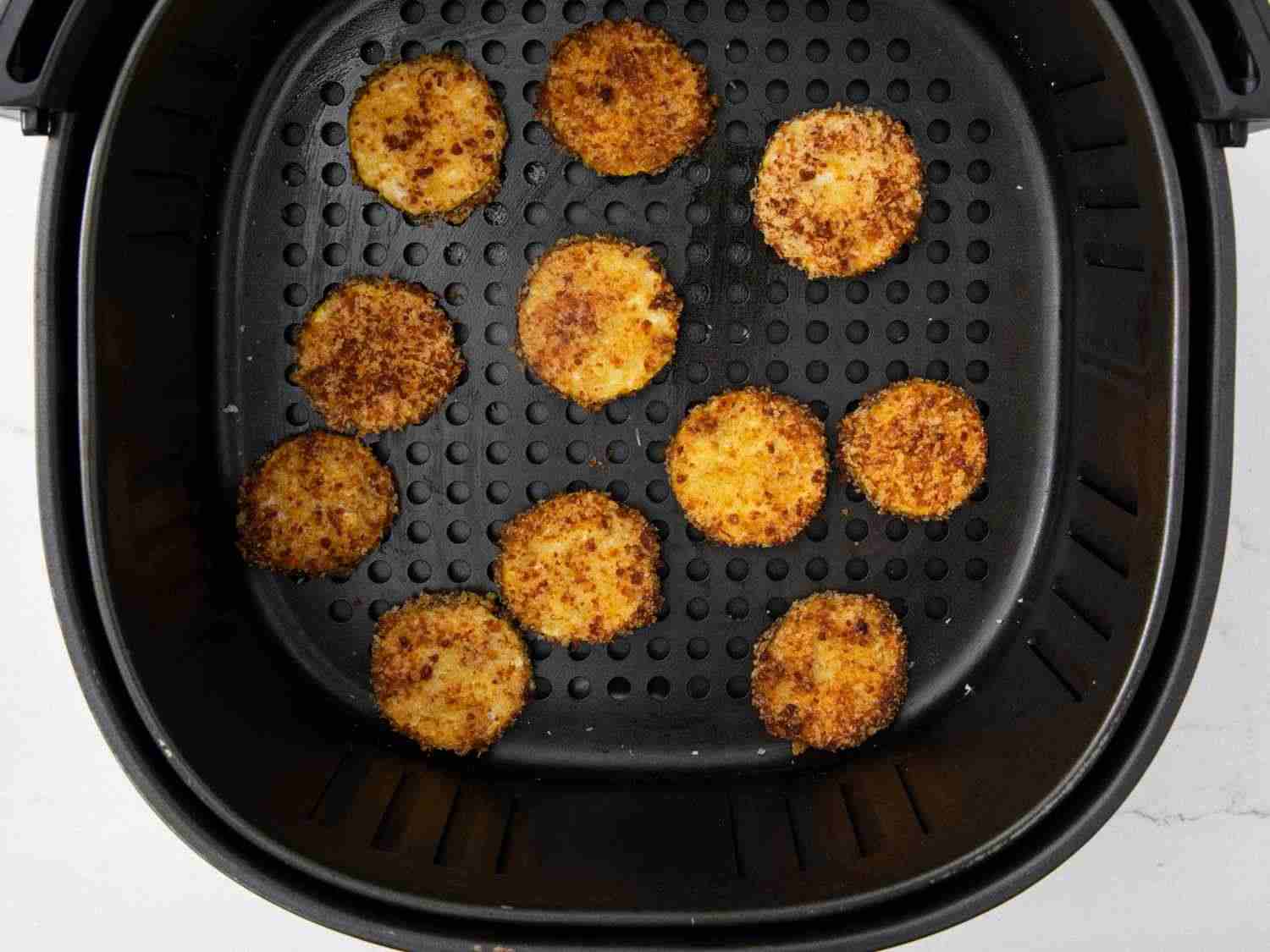 - Step 5:Cook in the preheated air fryer for 10 minutes; flip the slices and cook 2 minutes more. Repeat with remaining zucchini slices. Dotdash Meredith Food Studios